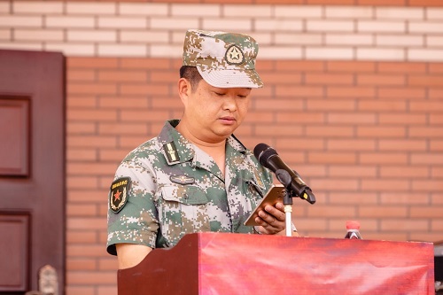 教官代表在发言中表示,全体教官将认真履行职责,因材施教、文明施教,严格训练,严格要求,发扬不怕苦、不怕累的精神,以良好的军人形象、过硬的军事本领引导大家提高政治思想觉悟,增强集体主义精神和纪律观念,磨练意志,培养吃苦耐劳的精神,增强国防观念,提高同学们的军事理论水平和技能。