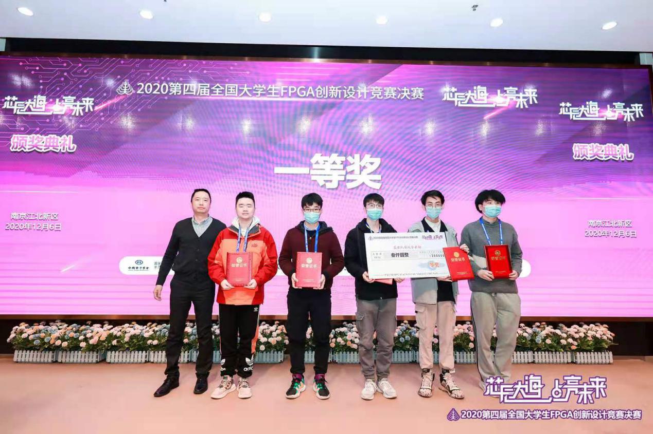 【本网讯】2020第四届全国大学生FPGA创新设计竞赛全国总决赛于2020年12月4日-6日在南京江北新区ICisC实训基地举行。此次竞赛由中国电子学会、国家级实验教学示范中心联席会电子学科组主办,东南大学、南京市江北新区管委会联合承办。本届竞赛共有包括清华大学、北京大学等在内的131所高校的900多支队伍报名参赛。我校通信工程学院(微电子学院)李蠡副教授指导的研究生相博镪、胡双、邹金成团队设计的名为“一种含基于GRU网络硬件加速器的AI编曲SoC”的参赛作品在初赛中脱颖而出,进入全国总决赛。与来自全国各地的139支参赛队伍,近408名参赛选手在南京同场竞技。该团队所完成的作品以较高的科研性、完成度以及创新性,荣获全国一等奖、最佳创意奖两项大奖。成都信息工程大学在此次竞赛中积极参与和有效组织,获得了优秀组织奖。