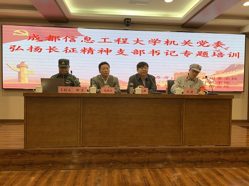 本次培训学员代表、学校党委常委、组织部部长、组织部党支部书记熊建作为带队领导参加了开班仪式并全程参加培训。在谈到培训收获体会时他指出:弘扬伟大长征精神,走好今天的新长征路,是新时代条件下我们面临的一个重大课题。学校机关各支部,要带头深入学习和贯彻落实好党的十九届五中全会精神、省委十一届七次全会精神、学校更名大学后的第一次党代会精神,在回顾长征艰苦卓绝的战斗岁月中,在重温习近平总书记关于长征精神的重要论述中,在深刻领会中央和省委关于加快推动成渝地区双城经济圈建设的精神中,在落实好学校党代会的决策部署中,宣传和发动师生继承和发扬伟大长征精神,牢固树立“四个意识”,坚定“四个自信”,坚决做到“两个维护”,攻坚克难,开拓创新,顾全大局,锐意进取,为建设开放的特色鲜明的高水平成都信息工程大学而努力奋斗!