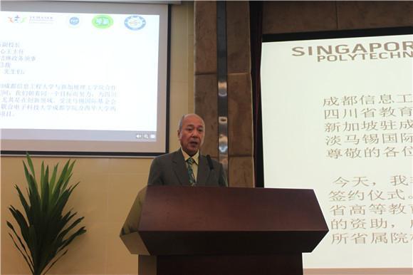 淡马锡国际基金会项目合作高级主管Stanley Lee、淡马锡国际基金会公关经理Tan Junming、新加坡理工学院国际关系事务部主任Lee Leck Seng、新加坡理工学院副总经理Chia Hui Yong,四川省教育厅、电子科技大学成都学院、西华大学、成都东软学院的领导以及我校相关部门负责人等参加了签约仪式。