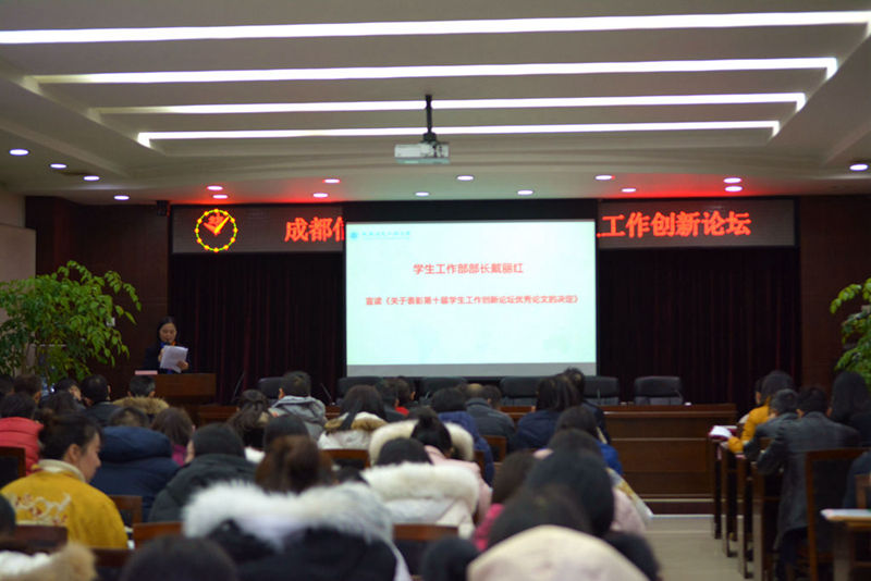 戴丽红宣读了《关于表彰第十届学生工作创新论坛优秀论文的决定》。本次论坛共收到全校学工战线的论文53篇,经校外专家评审,17篇论文分别获得一、二、三等奖和优秀奖。大会对李璘来撰写的《英国高校“以生为本”的学生服务机制研究及对我国高校学生工作的启示——以雷丁大学为例》等获奖论文给予了表彰。