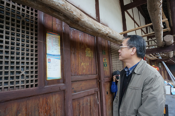 余敏明查看贫困户家中帮扶信息卡