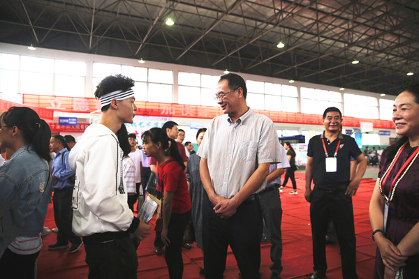 迎新当天,学校校长余敏明,副校长于世祥、马洪江、肖月强等校领导与相关部门负责人来到迎新现场。在家长休息区,他们与新生家长亲切交流,详细询问学生的家庭情况、录取专业和报到中是否存在困难。在新生报到点,余敏明与计算机学院2017级新生孙杰明亲切交谈,鼓励他尽快适应校园生活。校领导们在学生工作处设立的迎新实时监控大屏幕前驻足观看,详细了解了新生报到的实时情况。