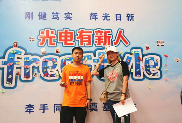 大气科学学院的志愿者装扮成可爱的憨萌气象娃娃与新生互动,引来新生纷纷拥抱合影。光电技术学院新生报到处“光电有新人——freestyle”迎新展板上粘贴了写满寄语的千纸鹤,点燃新同学对大学生活的向往。资源环境学院推出印有“绿色 青春资环”字样特色鲜明的T恤,将环保理念融入其中,极富学院特色。物流学院的“点赞墙”别具一格,增加了新生对学院的认同。统计学院等学院成立了“党员志愿者服务队”,以学生党员的良好风貌为新生树立了榜样。在学校新媒体中心设置的“17启航 逐梦成信”等宣传展板前,新生和家长们纷纷在有趣的录取通知书和憨萌的吉祥物相框前留影,珍藏初入大学这一最有意义的瞬间。