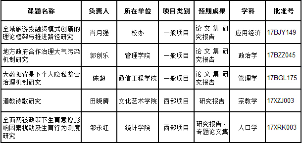 【本网讯】近日,全国哲学社会科学规划办公室和教育部分别正式公布了2017年国家社科基金项目和教育部人文社科项目立项结果,我校获国家社科基金项目立项5项,教育部人文社科项目立项2项,具体情况如下: