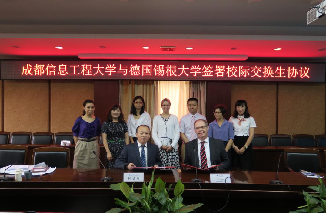 会后,我校与德国锡根大学签订《成都信息工程大学与德国锡根大学交换生协议》。锡根大学代表团一行前往学校无人车设计实验室和大气探测博物馆进行参观。