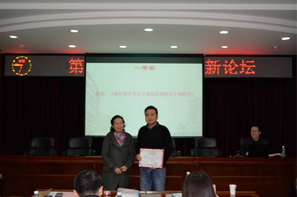 敬枫蓉宣读了《成都信息工程大学关于表彰第九届学生工作创新论坛优秀论文的决定》和《关于公布成都信息工程大学第五届辅导员职业能力大赛评选结果的通知》。大会对童强撰写的《新时期大学生心理危机预防与干预研究》等11篇获奖论文和第五届辅导员职业能力大赛获奖老师给予了表彰,鼓励各位老师再接再厉,再创佳绩。