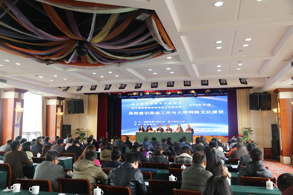 【本网讯】 11月24日,由成都信息工程大学和四川师范大学主办、宜宾学院承办的四川高校网络文化研究会暨四川高校教师思想政治工作研究会2016年年会在宜宾召开。省委教育工委委员、省教育厅党组成员李光华,四川省委宣传部、省网信办副主任陶俊培,宜宾学院党委副书记毛克强,四川省教育厅宣传思想工作处处长陈小红出席大会。全省50多所高校党委宣传部、相关职能部门的负责人和有关方面的同志共120余人参加会议。大会由四川高校网络文化研究会会长、我校党委副书记敬枫蓉主持。