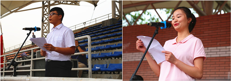 电子工程学院黄晓、统计学院杨晓燕代表新生在开学典礼上发言。她们表示,我校为同学们提供了一个展示自我,超越自我的平台,今后将在这里为人生刻下永恒、无悔的记忆,一起大胆拥抱每一个明天。
