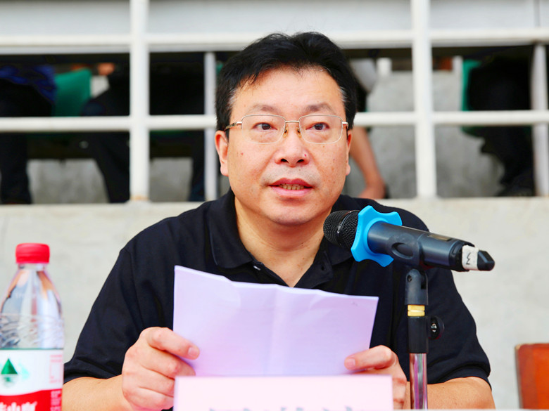 周激流代表学校向2016级新同学致以热烈欢迎,向本次担任军训任务的领导和全体教官表示衷心的感谢。他希望2016级新同学在为期半个月的军事训练中,经受住军训对身心的双重考验,严守纪律、服从指挥、刻苦训练,以饱满的热情全身心投入,以坚强的意志和顽强的毅力战胜困难,以出色的表现圆满完成军训任务。