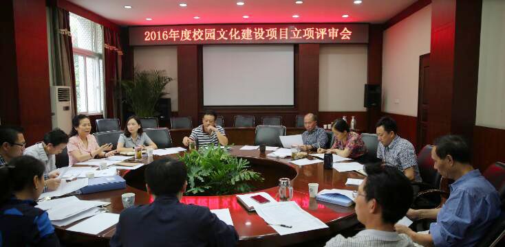 【本网讯】9月7日下午,学校在行政楼第六会议室召开2016年度校园文化建设项目立项评审会。党委书记赖廷谦、党委副书记敬枫蓉、副校长于世祥和各评审专家参加了会议。会议由敬枫蓉主持。