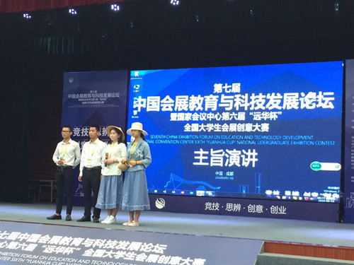 本次活动以“竞技思辨 创意 创业”为主题,来自全国150多家会展院校、会展企业、会展行业协会以及其他会展相关单位的800多位师生代表及行业嘉宾参与了此次大会。我校通过前期预赛共组织了三支队伍参加决赛,三支队伍都取得了优异成绩,其中“品茶 品未来 点燃山区梦想”代表队获得特等奖,其他两支队伍也各自获得了二等奖。