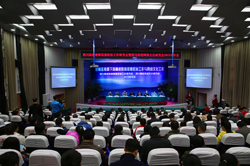 【本网讯】 11月27日,由四川师范大学主办、我校协办的四川高校教师思想政治工作研究会暨四川高校网络文化研究会2015年年会在四川师范大学狮子山校区学术报告厅召开。四川省教育厅宣传思想工作处处长陈小红,四川省社科联规划办主任黄兵,四川师范大学党委副书记唐尚朴,四川高校网络文化研究会会长、我校党委副书记敬枫蓉出席大会。全省86所高校宣传部、相关职能部门的负责人和有关方面的同志共120余人参加会议。我校宣传统战部部长饶华、副部长丁恒康,文化艺术学院教授蓝鹰参会。大会由四川高校教师思想政治工作研究会会长、四川师范大学党委副书记王万民主持。