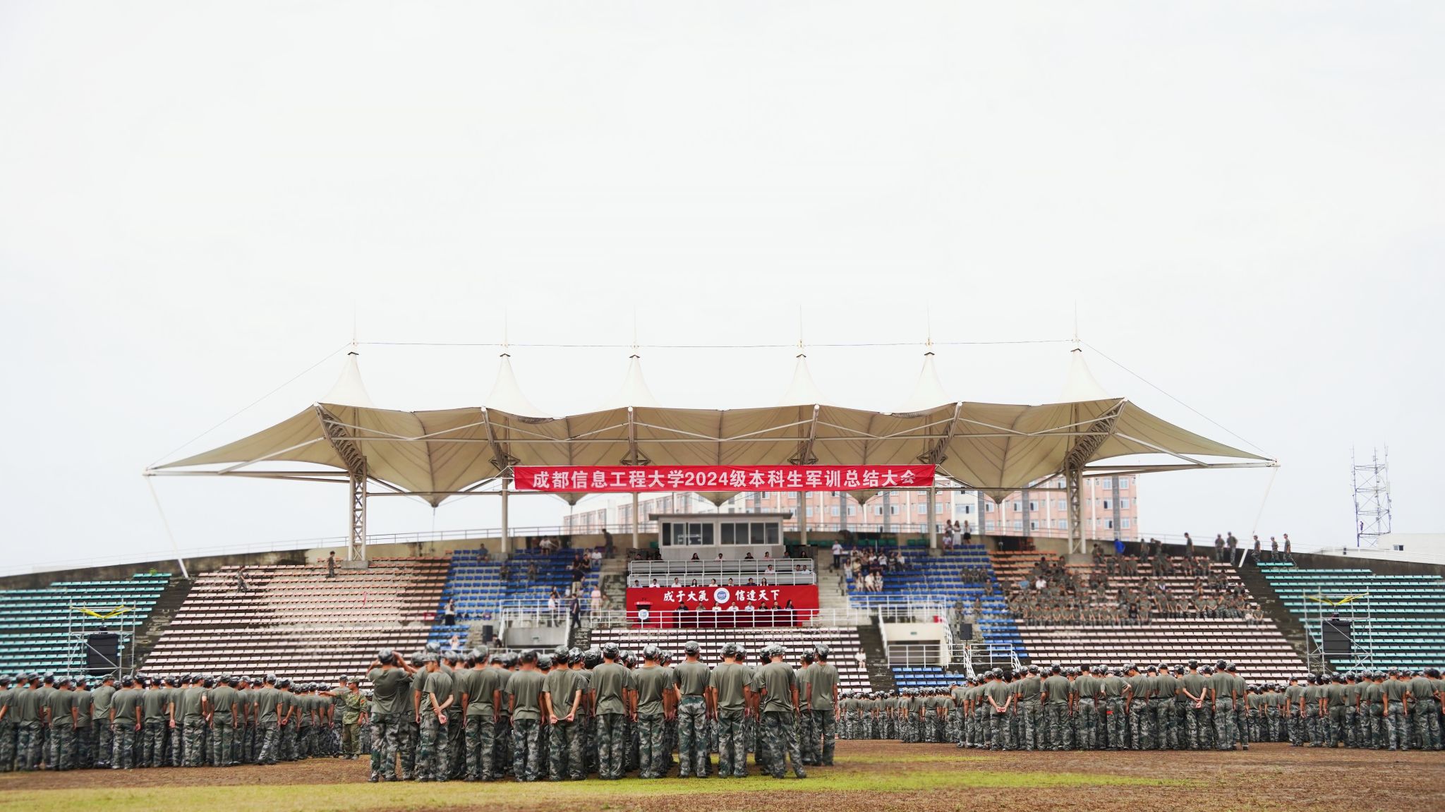 军训团团长赵大陆、教官刘庆红宣读了《成都信息工程大学关于表彰2024级本科生军训先进集体和个人的决定》。承训单位领导和学校领导为获奖集体和个人颁发了荣誉证书。