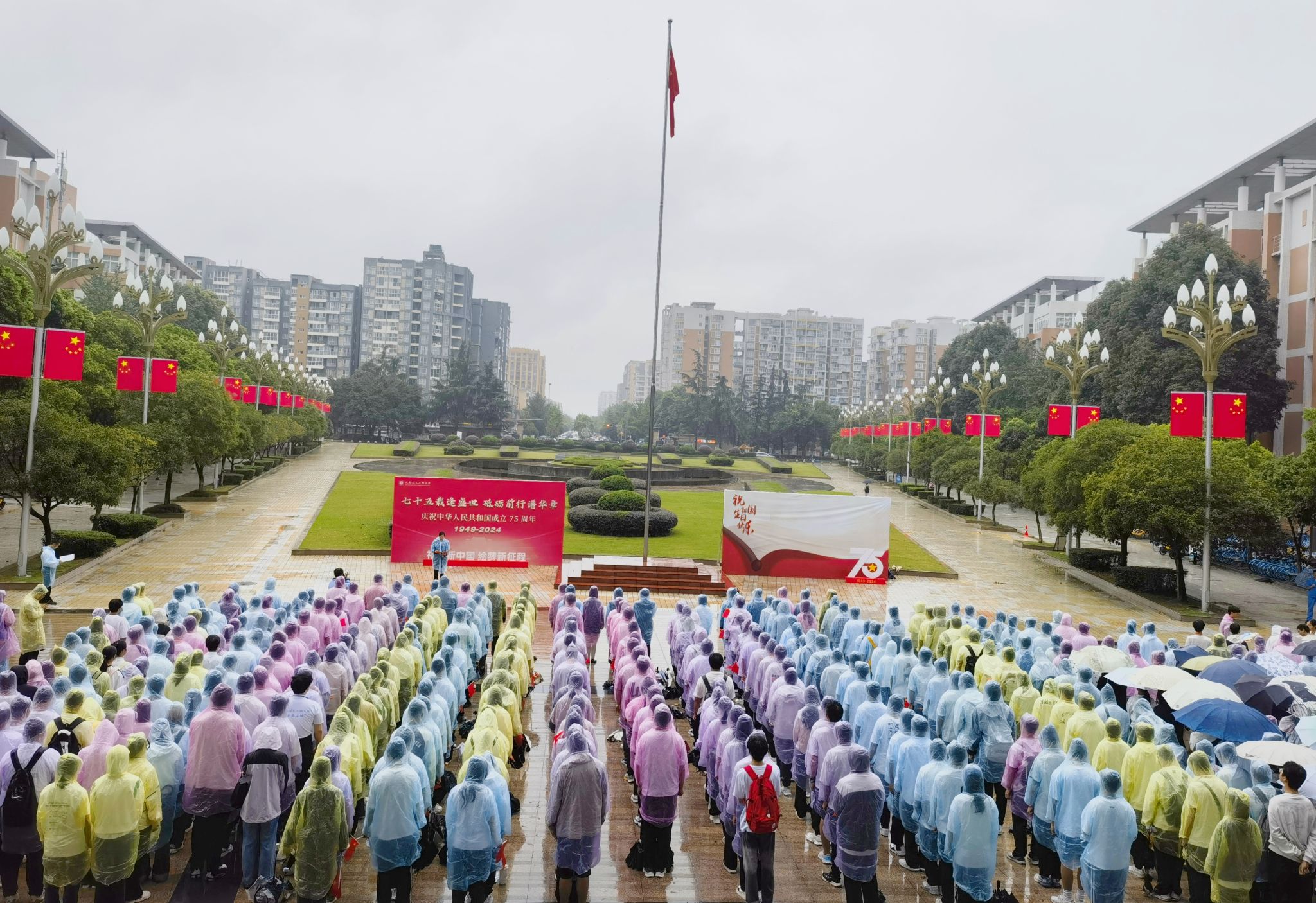 七十五载逢盛世,砥砺前行谱华章。学校举行升旗仪式,旨在唤醒师生的爱国情怀与责任感,指引我们勇于担当,追求卓越,传递成信人对祖国的美好祝愿。全校师生将以更加振奋的精神,投入到民族复兴的宏伟事业,在为祖国献力的伟大征程中,以拼搏与贡献书写成都信息工程大学的新篇章。