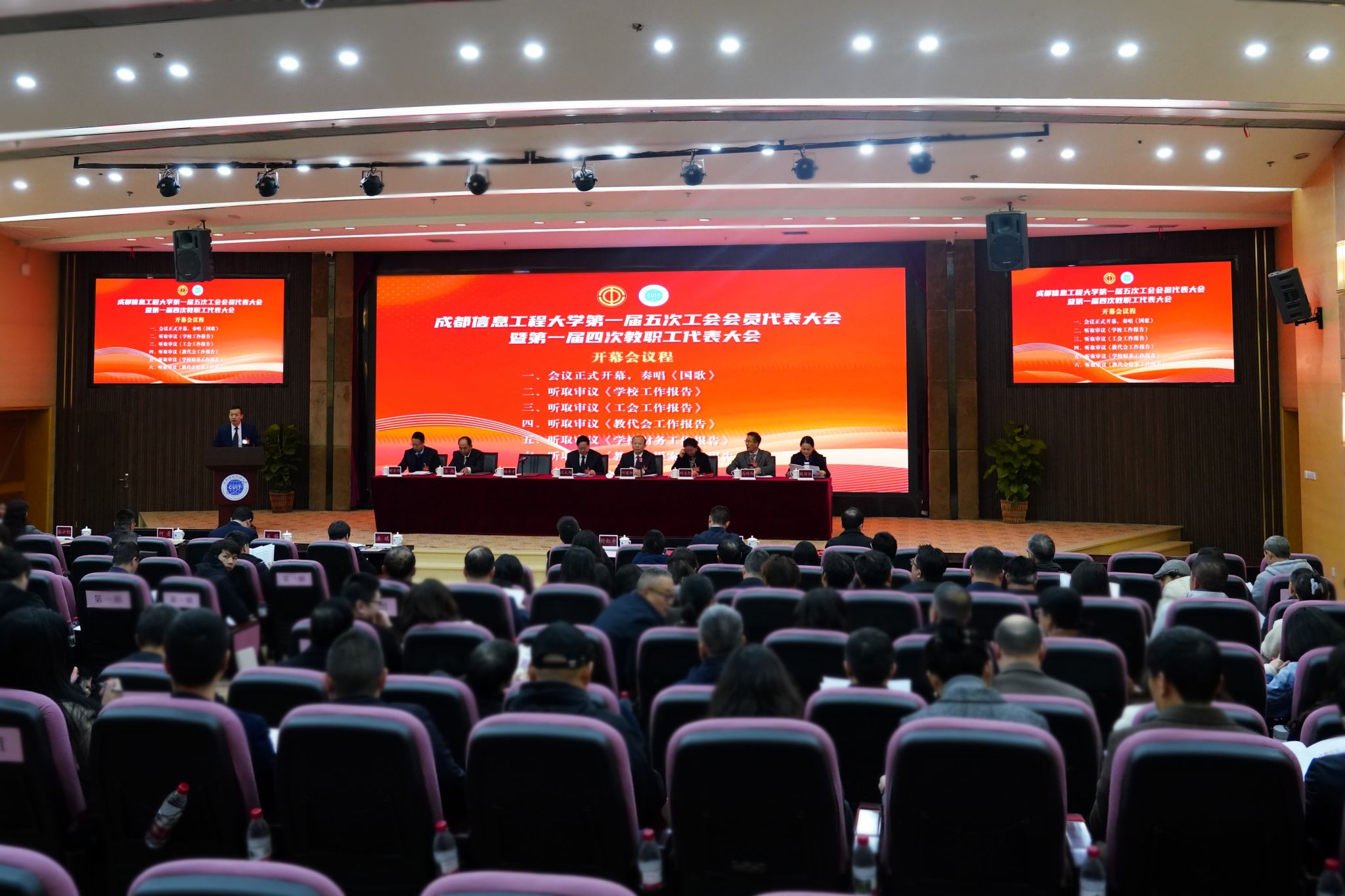 【本网讯】成都信息工程大学第一届五次工会会员代表大会暨第一届四次教职工代表大会于3月21日,在航空港校区国际会议厅举行。正式代表114人、特邀代表36人参加了会议。会议由学校党委副书记杨奇才主持。