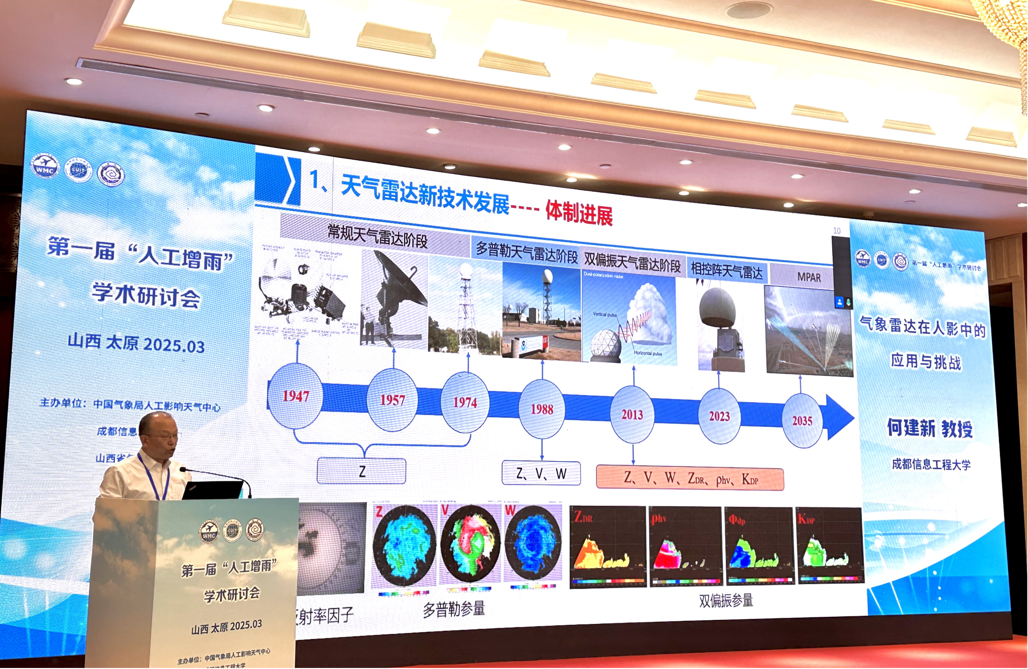 我校校长何建新作了《气象雷达在人影中的应用和挑战》的特邀报告。他首先对气象雷达发展概况做了简单回顾,然后介绍了学校在气象雷达领域做出的贡献和最新的设备研制情况,对天气雷达、云雷达、激光雷达在人影中的应用与挑战进行了详细分析,并对未来气象雷达更好服务于人工影响天气科研和业务方面进行了展望。