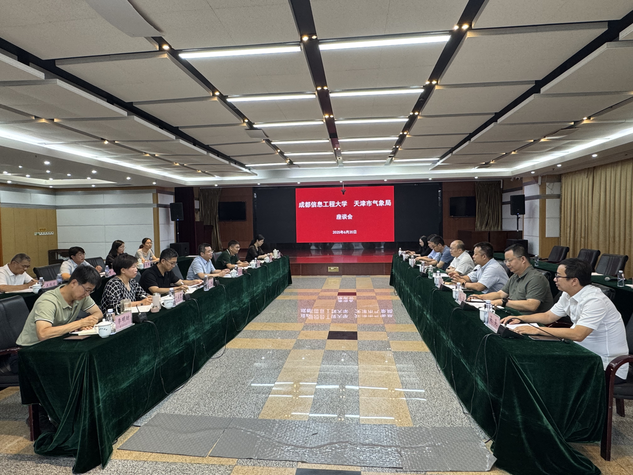 天津市气象局应急与减灾处、观测与预报处、科技发展处、人事处、气象台、气候中心、气象科研所、雷达研试中心、人工影响天气办公室、环境中心负责人,学校党政办公室、科技处(大学科技园管委会办公室)、大气科学学院、电子工程学院(大气探测学院)、光电工程学院(人工影响天气学院)的负责人和相关团队老师参加座谈交流。