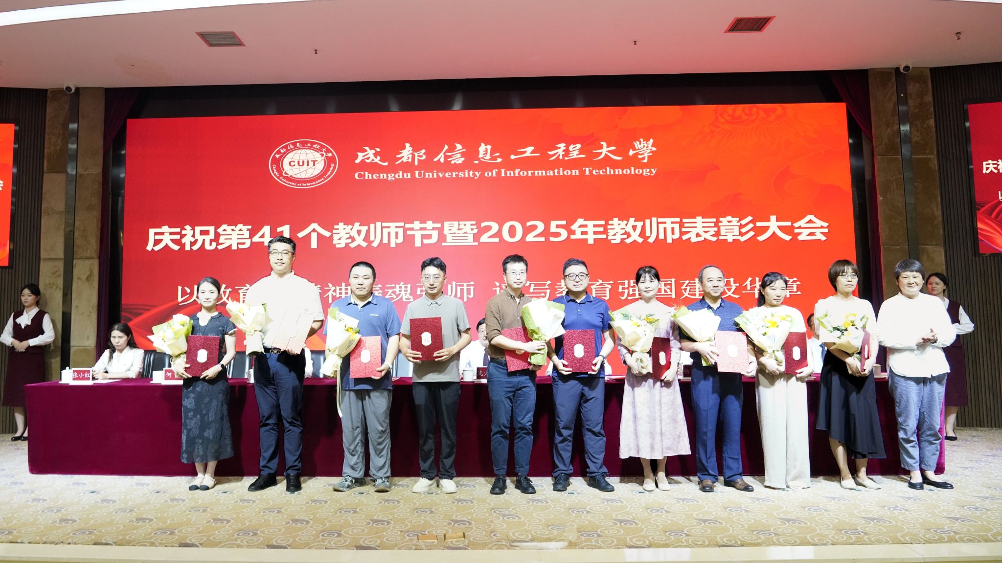学校对在各个领域取得突出成绩、为学校发展作出卓越贡献的优秀教师予以表彰,学校校长何建新宣读了表彰文件。张葛祥、李勇两位教授遴选为享受国务院特殊津贴专家;大气科学学院院长华维教授获“全国气象教学名师”称号;大气科学学院葛非教授获国家级人才称号;唐婷婷、李勇、陈浩3名教师获省级人才称号;赵长名老师获成都市人才称号。学校启动荣誉体系,教务处、科技处获“管理服务先进集体”称号;自动化学院、人工智能学院获“就业工作先进集体”称号;昌燕等5名教师获“研究生优秀指导教师”称号;郜东瑞等8名教师获“成信科技英才奖”;于尧等25名教师获“管理服务先进个人”称号;侯倩等10名教师获“就业工作先进个人”称号;田媛等10名辅导员获我校“十佳辅导员”称号。白杨、郭俊等10名教师获学校“青年教师教学奖”。此外,还有数10名教师在“第九届全国高等院校英语教师教学基本功大赛”“第十二届电工电子基础课程实验教学案例设计竞赛”等教学竞赛中获国家级、省级奖项。学校还对本年度获得“光荣从教30年”荣誉称号和“光荣退休奉献奖”的退休教师予以表彰。