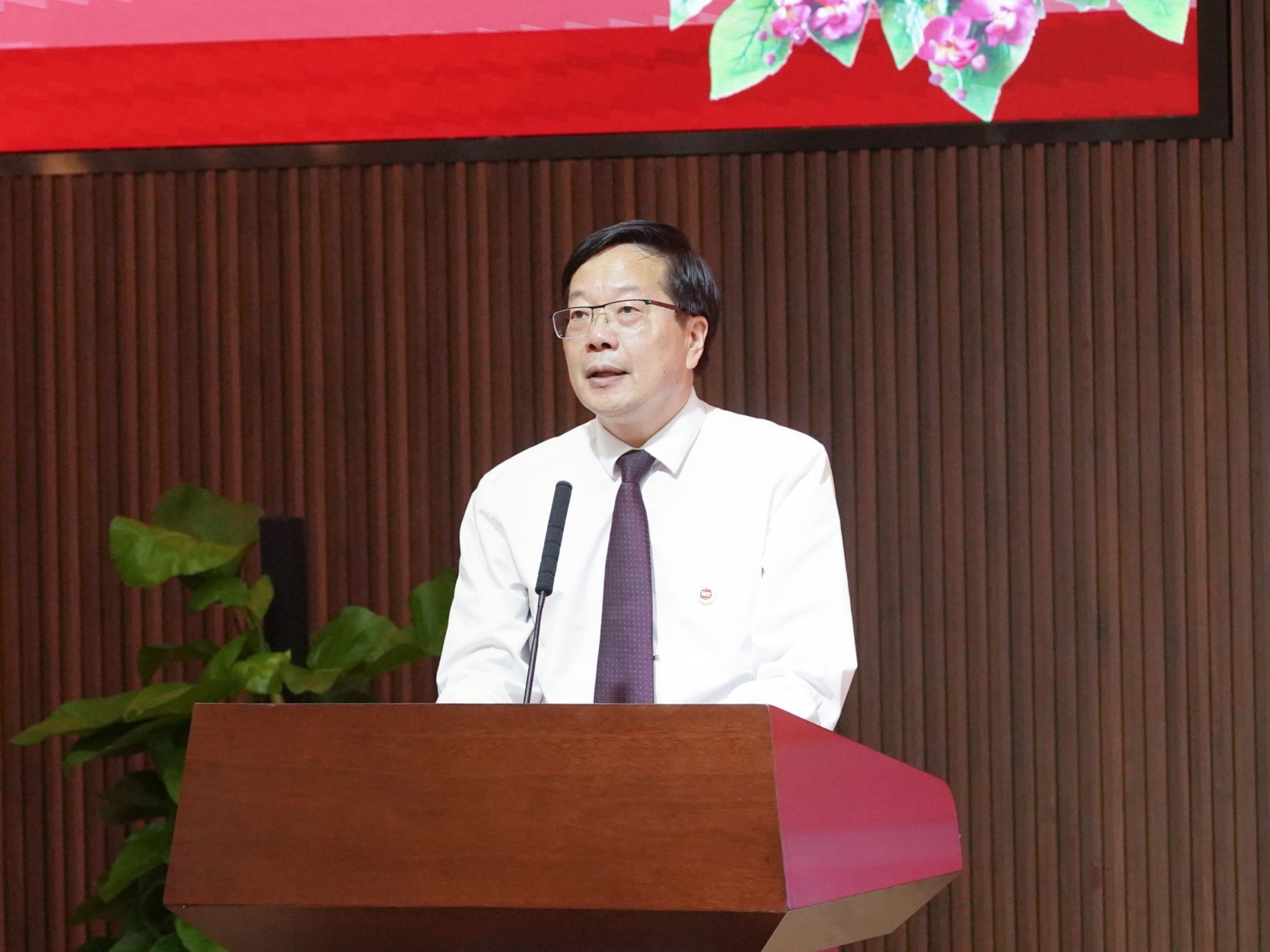学校校长何建新代表学校向辛勤耕耘在教育一线的全体教师致以诚挚问候和崇高敬意,向长期默默奉献、关心支持学校发展的离退休教师们表示亲切关怀与美好祝愿。他表示,今年的教师节承载着特殊的历史意义。学校招收了第一届博士研究生,并成功获得本科推免资格,这标志着我们的人才培养迈上了新台阶。这一里程碑的突破,离不开每一位教师的坚守与付出。正是大家以“躬耕教坛、强国有我”的使命担当,践行教育家精神,为学校筑牢坚实的学科基础、汇聚强大的育人力量。