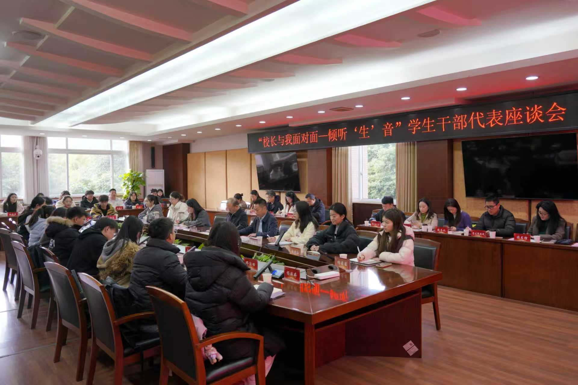【本网讯】1月4日下午,“校长与我面对面——倾听‘生’音”学生干部代表座谈会在航空港校区第七会议室召开。完美(中国)官方校长何建新、副校长陈权亮出席会议。相关职能部门负责人,以及校学生会、研究生会、各学院与班级学生干部代表参加会议。座谈会由陈权亮主持。