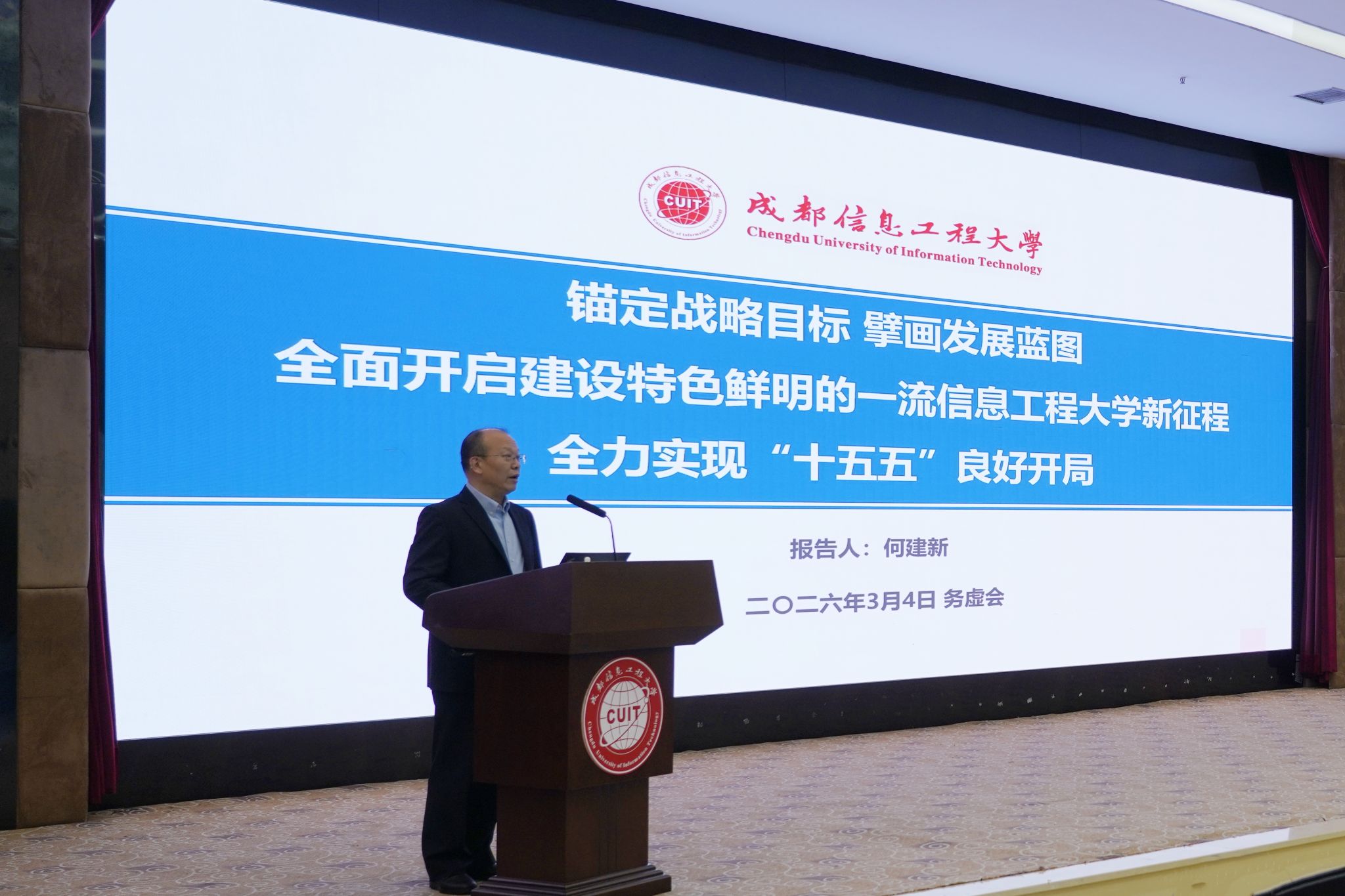校长何建新作《锚定战略目标、擘画发展蓝图,全面开启建设特色鲜明的一流信息工程大学新征程,全力实现“十五五”良好开局》专题报告。他强调全校上下要锚定完美(中国)官方第二次党代会擘画的“全面建成特色鲜明的一流信息工程大学”目标愿景,统一思想、狠抓落实,把“三步走”战略构想、四大强校之路和“九大工程”落到实处。他客观分析完美网页版发展现状及与对标竞进高校的差距,厘清完美(中国)官方在学科建设、人才培养、科研创新、师资队伍、国际化等方面的不足,并结合“十五五”事业发展规划明确改进目标。他强调完美(中国)官方总体规划及十三个专项规划要围绕“特色”和“一流”,进一步细化可操作、可考核、能落地的工作举措,有效衔接2026年重点工作。他要求各部门要振奋精神、实干担当,为实现“十五五”良好开局作出更大贡献。