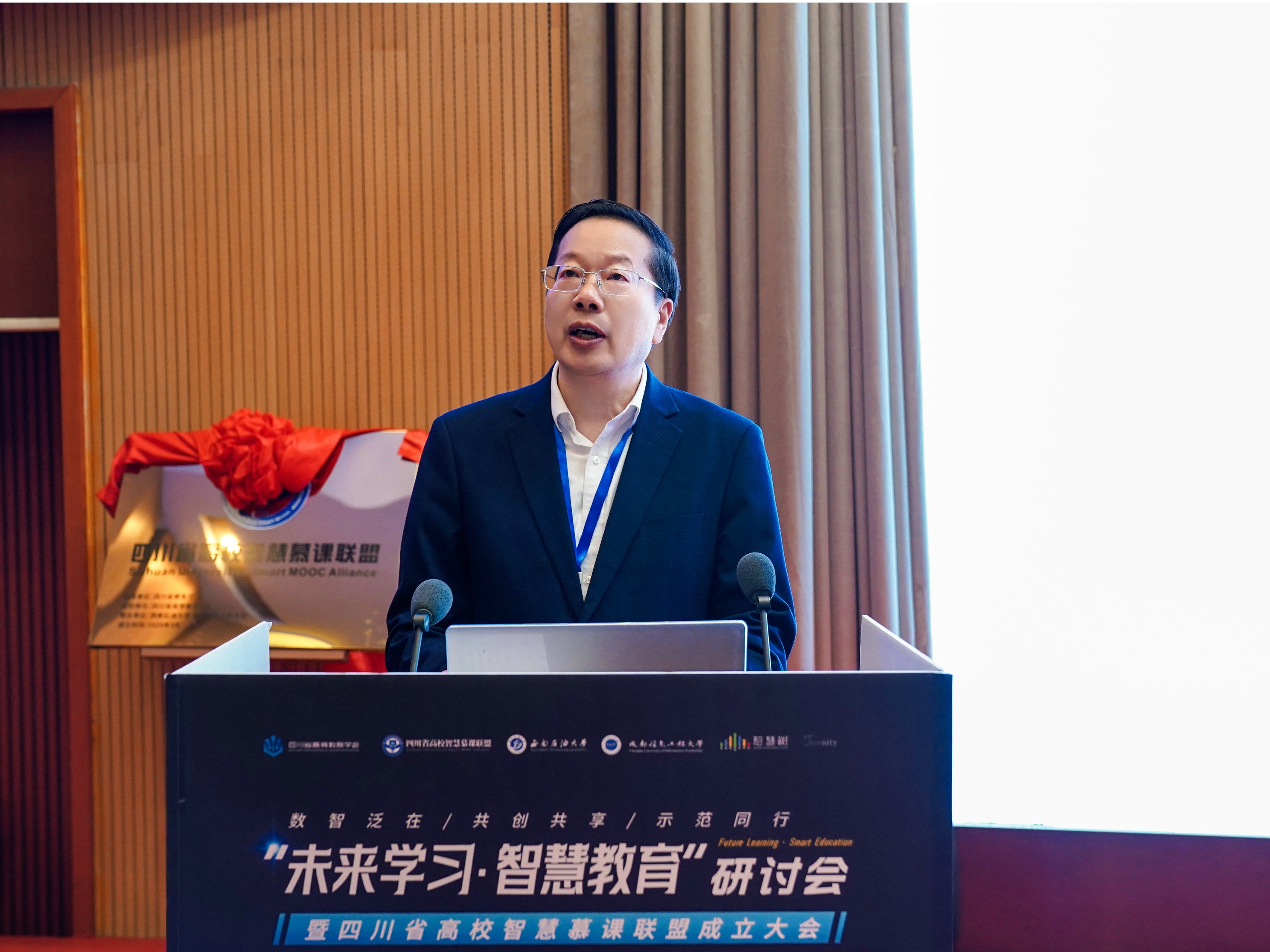 四川省教育厅高等教育处处长杨火海发表讲话。他指出,当前四川省正深入推进《四川省教育数字化行动计划(2025-2027年)》与《人工智能赋能四川高等教育教学改革十条措施》落地实施,四川省高校智慧慕课联盟的成立恰逢其时、意义重大。希望联盟充分发挥平台聚合作用,推动川内高校实现资源共享、协同发展,探索打造具有四川特色的智慧教育发展路径,为四川高等教育高质量发展注入强劲动力。