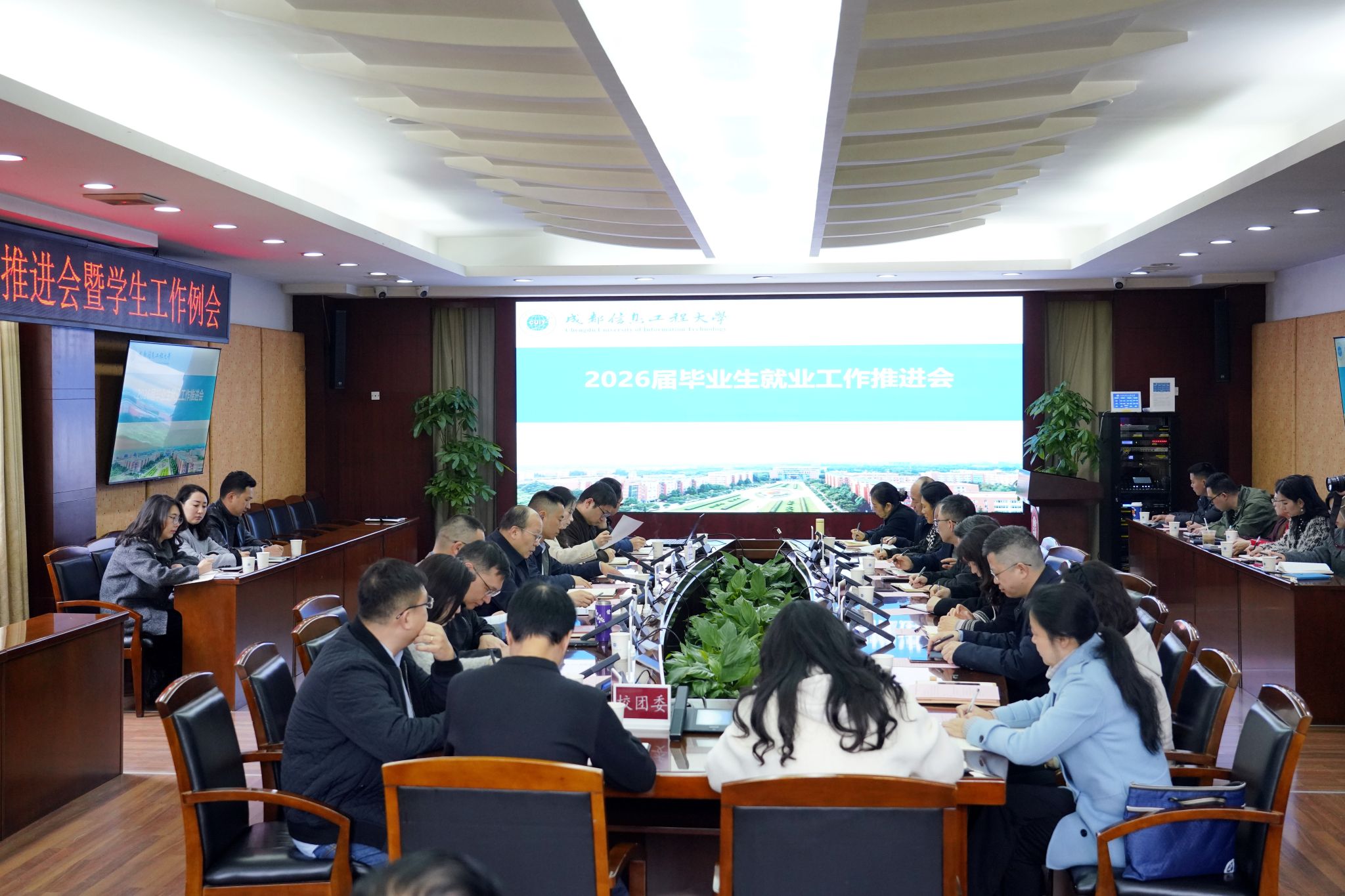 何建新在总结讲话中强调,各相关职能部门、各学院要坚持供需两端协同发力,一方面持续加大岗位开拓力度,主动对接行业企业、科研院所和重点领域,不断拓宽毕业生就业空间;另一方面要更加注重提升毕业生就业能力和就业质量,聚焦学生求职中的难点,做好政策宣讲、岗位推送、简历辅导、面试指导、心理疏导等全链条服务,引导毕业生树立正确择业观、就业观和成才观,理性看待就业形势,积极投身国家战略需要、行业发展前沿和基层实践一线,在服务社会中实现更高质量就业。他强调,要坚持分类施策、精准帮扶,特别是对就业意愿尚不明、重点群体毕业生,真正落实“一人一策”“一生一档”帮扶要求;要把促进就业与人才培养、学科建设、专业优化更加紧密结合起来,推动招生、培养、就业联动改革,不断提高人才培养与经济社会发展需求的契合度,以更大力度、更实举措、更优服务,全力推动2026届毕业生实现高质量充分就业。