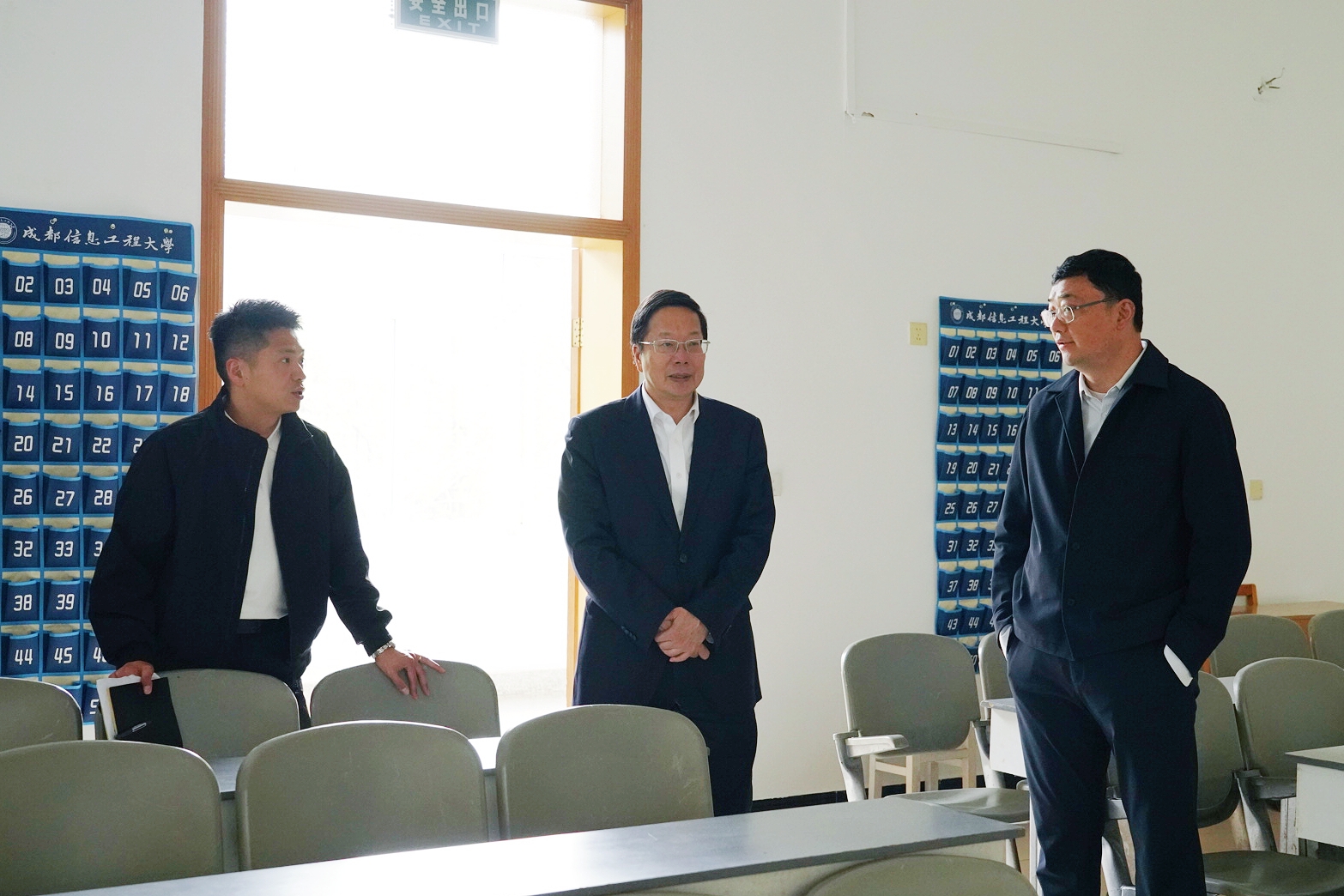 座谈会后,沈火明一行人前往龙泉校区第二教学楼和第三教学楼实地考察。