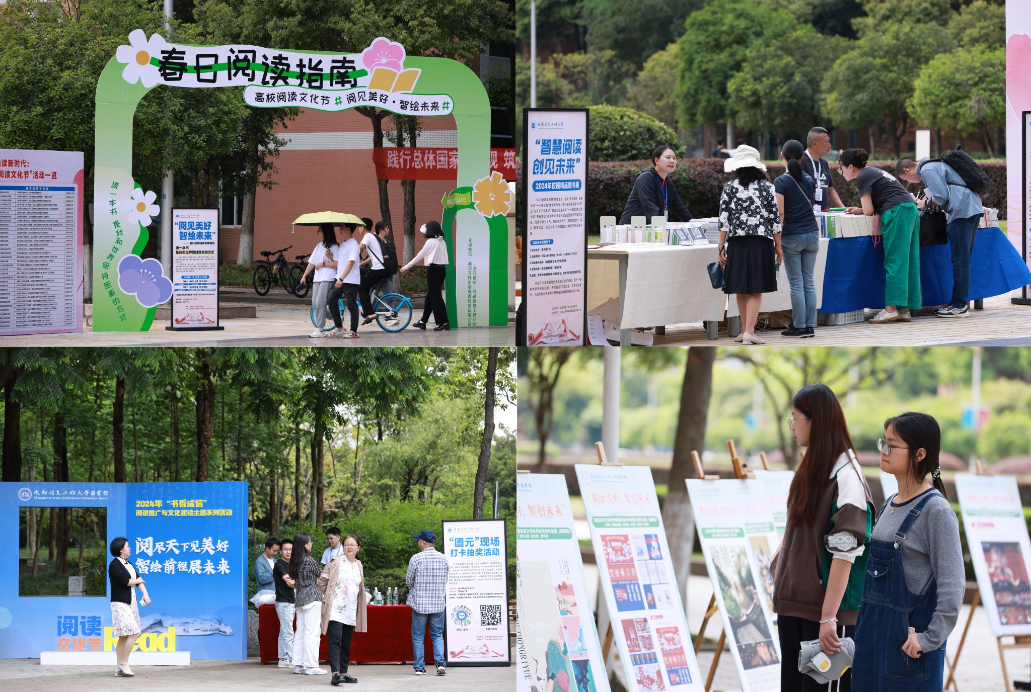 会议期间还举办了一系列丰富多彩的现场体验交流活动,包括第二届“阅读理解中国,讲述传递梦想——中国式现代化的世界意义”书评大赛获奖作品展、“数绘古韵·智创未来”---2024“书香成信”学生艺术设计获奖作品展、成都信息工程大学“书香成信”阅读推广与文化建设成果展、“阅见美好·智绘未来”春日阅读指南书集活动、“智慧阅读,创见未来”——2024年校园精品图书、教材教参展、“云”游书海·智享“悦”读——图书馆智能数字人和听书体验活动、“圕元”现场打卡抽奖活动等。