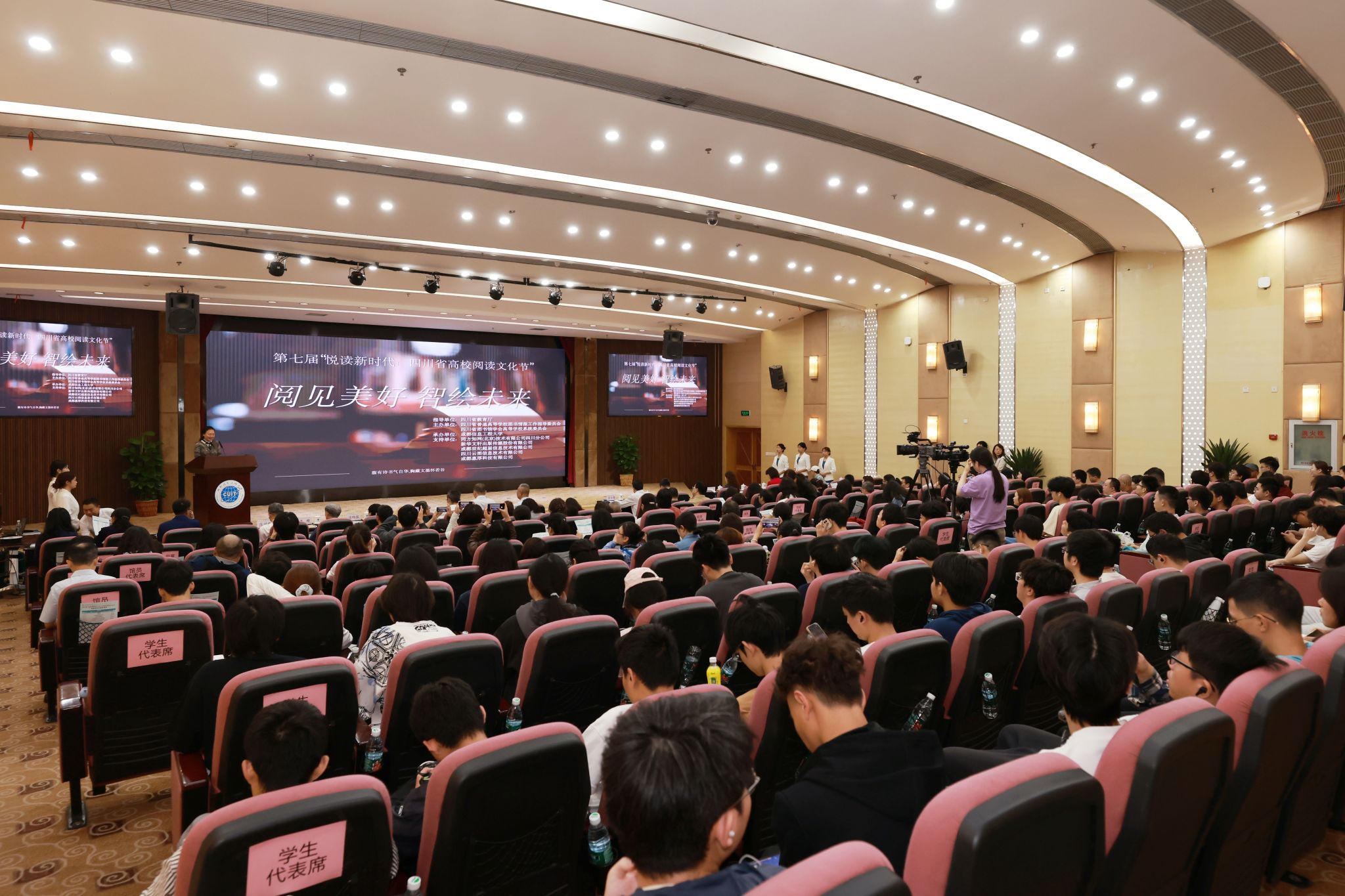 【本网讯】4月19日,为深入学习贯彻党的二十大精神和习近平文化思想,坚持高质量发展理念,以数智技术赋能全民阅读,凝聚高校师生奋进新时代的强大精神力量,为教育强省、文化强省建设不断提供更加充沛的文化滋养,在四川省教育厅的指导下,由四川省普通高等学校图书情报工作指导委员会、四川省图书馆学会高等学校系统委员会主办,成都信息工程大学承办的“阅见美好 智绘未来”——第七届“悦读新时代:四川省高校阅读文化节”启动仪式在学校航空港校区盛大举行。韬奋基金会理事长刘伯根,四川省图书馆党委书记、馆长王龙,四川省社会科学界联合会科普处调研员张晓泓,四川省图书馆学会秘书长赖柯,四川省高等学校图书情报工作指导委员会主任委员兰利琼,特邀专家谭楷,学校党委书记沈火明、副校长朱明出席了会议。