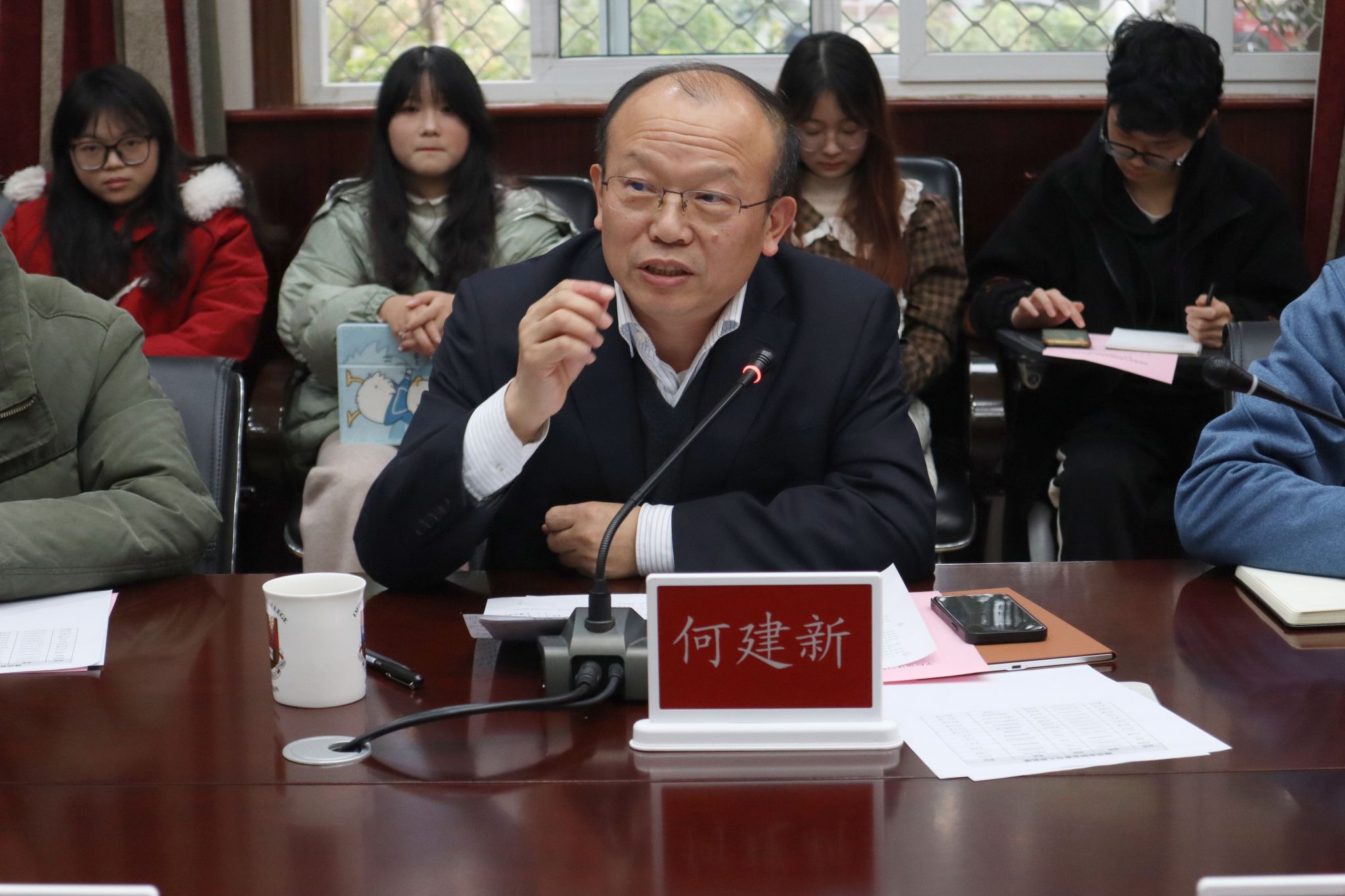 何建新与参会学生干部亲切交流,详细解答同学们提出的问题。他代表学校对学生会和研究生会的工作给予了肯定。他就学生干部如何提升自我、更大发挥学生干部作用,提出四点希望:一是学生干部要充分发挥学生自我发展的骨干力量,要在构建安全稳定、和谐文明校园等方面树立标杆榜样,在德智体美劳全面发展等方面起到示范带头作用;二是学生干部作为学校管理工作的得力助手,要当好学校与学生间的桥梁纽带,积极联动各院级学生会共同开展工作,汇聚合力,营造良好学风。三是学生干部作为校园文化建设的重要支撑,要传承中华优秀传统文化,从小事做起,引领广大同学为校园文化建设贡献力量。四是学生干部要担当好促进民族团结的友好使者,不断助力增进各民族同学之间的友谊,营造良好的民族团结氛围,要积极协助相关单位开展国际交流合作,讲好中国故事。他祝愿参会学生代表在未来的学习和学生工作中不断取得新进步,努力成为堪当时代重任的栋梁之才。