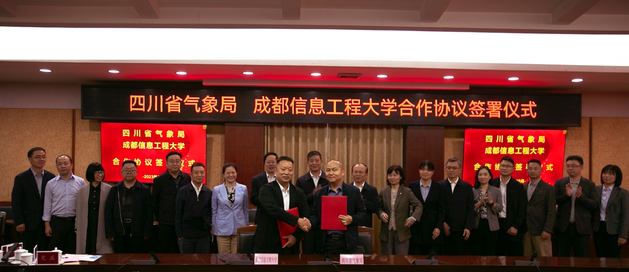 【本网讯】10月26日,四川省气象局党组书记、局长彭军,党组成员、副局长陆其峰一行到我校走访调研。学校党委书记沈火明、校长何建新、副校长舒红平参加会议。陆其峰、舒红平分别代表双方签署了局校合作协议,围绕加强对接、深化合作、共赢发展进行座谈交流。