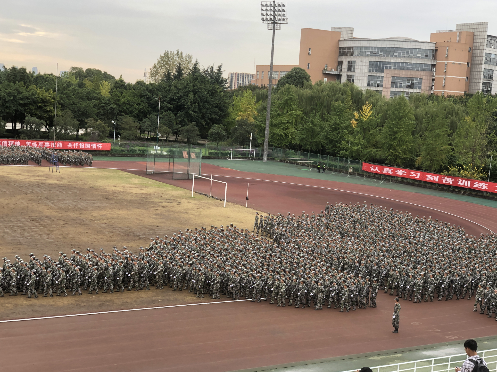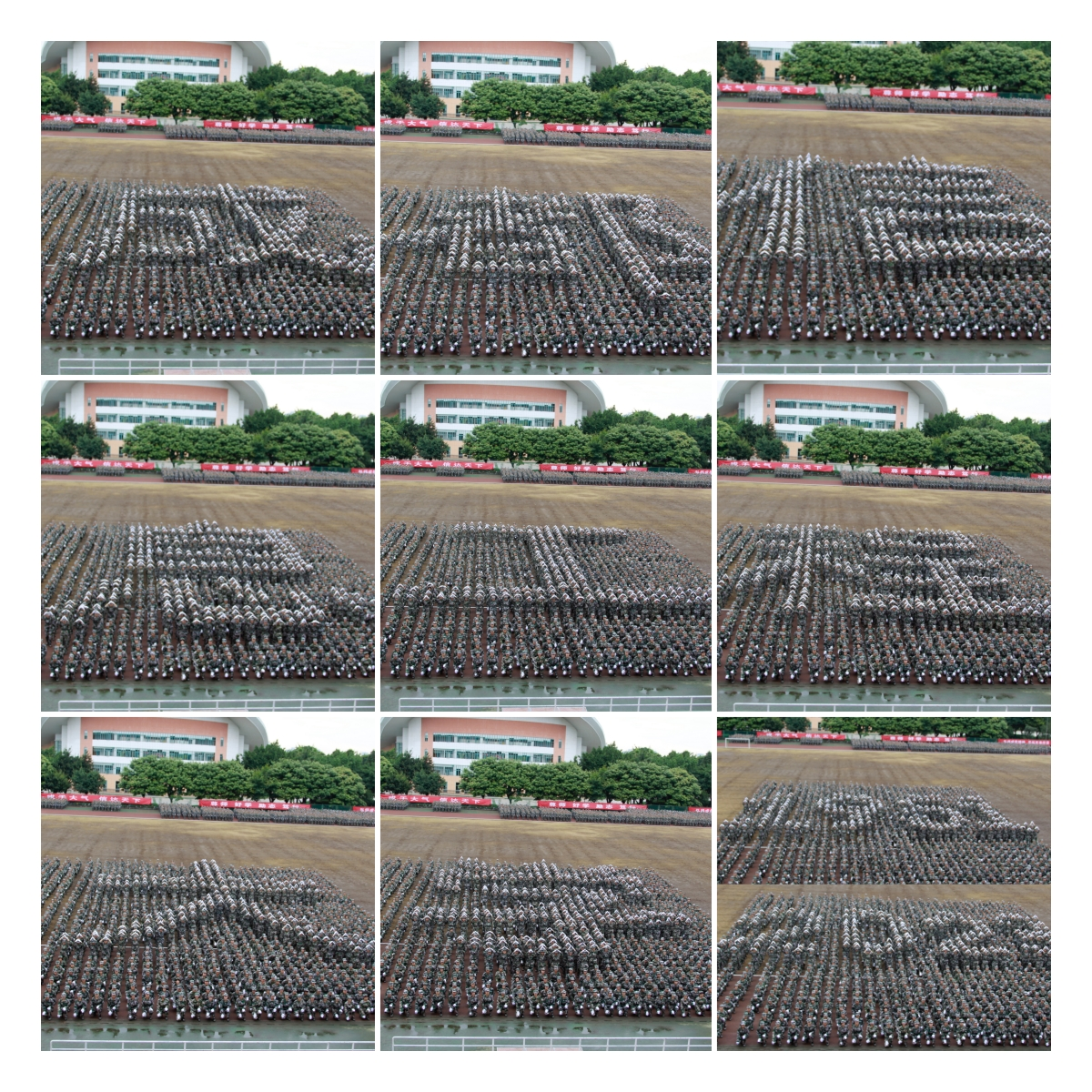 同学们行云流水地变换队列,摆出“成都信息工程大学”“1951-2023”“战斗机”等大气磅礴的图案,表达了成信学子对祖国的热爱以及对学校的祝福,展现了2023级学子锐意进取、追求卓越的精神风貌和军事训练的丰硕成果。