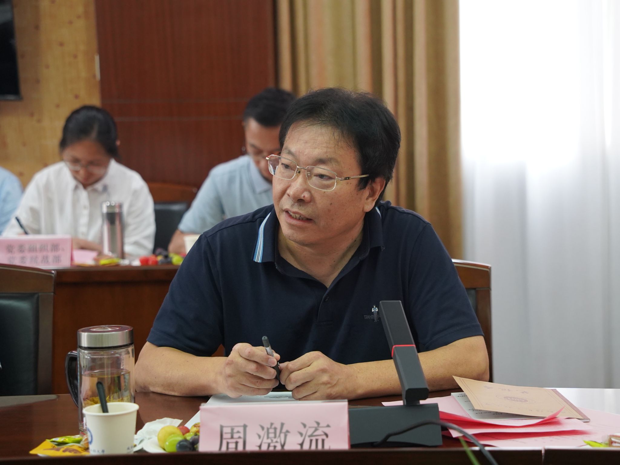 周激流强调,新时代中国高等教育的发展与崛起,有挑战、更有机遇。要办好新时代的大学,要切实加强师德师风建设,努力培养造就一支品行高尚、业务精湛、结构合理、充满活力的高素质专业化教师队伍,树立“躬耕教坛、强国有我”的志向和抱负,坚守三尺讲台,潜心教书育人。学校要牢固抓住“双一流”建设、博士点授权建设的机遇,攻坚克难,积极探索高等教育内涵式发展道路,向着早日建成开放的特色鲜明的高水平成都信息工程大学的目标不懈奋斗。