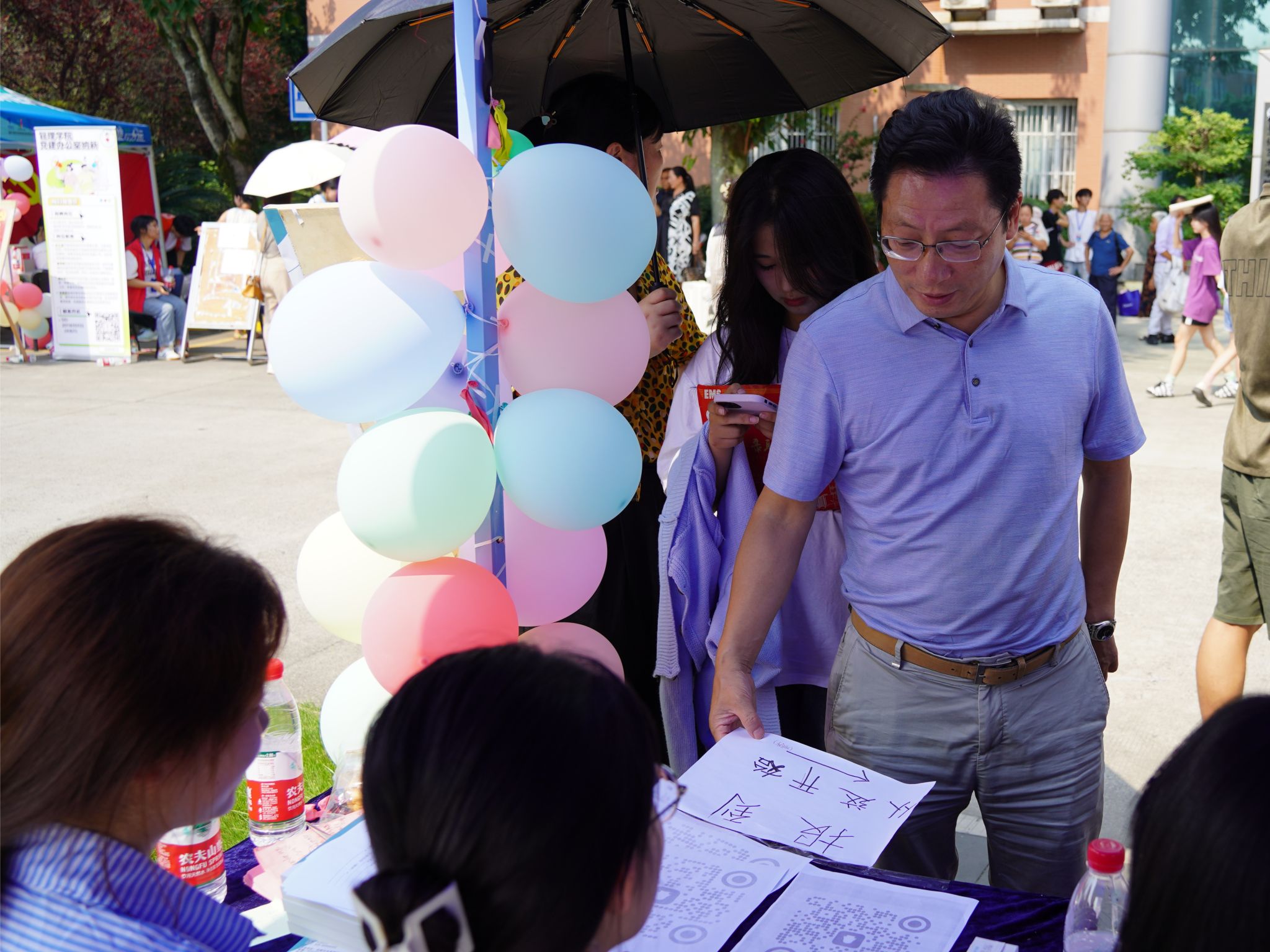 各学院为了迎接新成员用心安排布置了喜庆精美的合影墙、党员志愿服务、实验室作品展示、欢迎标语、吉祥物、签名板等学科特色鲜明、文化韵味十足的“见面礼”,让2023级同学的新起点、新面貌被共同见证和温馨定格。
