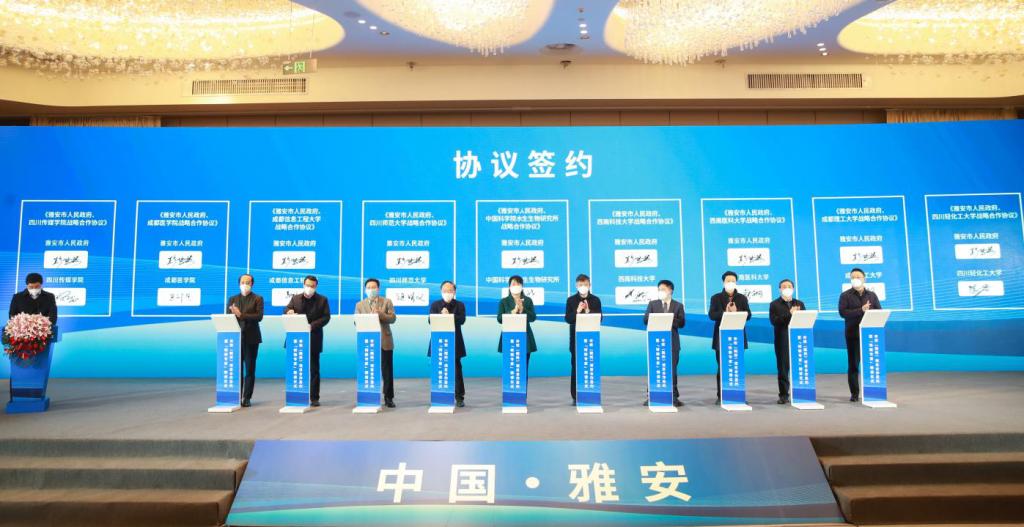 雅安市委副书记、市长彭映梅与9所市校(院所)签署了合作协议。马洪江代表我校和雅安市人民政府进行了签约。
