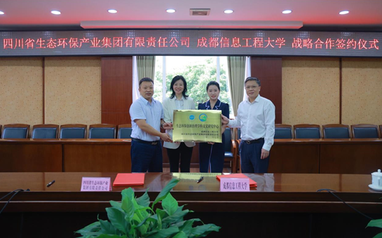 在与会人员的见证下,许娟与舒红平代表双方签署了战略合作协议。郭勇与舒红平为四川省生态环保产业集团与成都信息工程大学共建的“生态环保创新治理学科交叉研究中心”授牌。