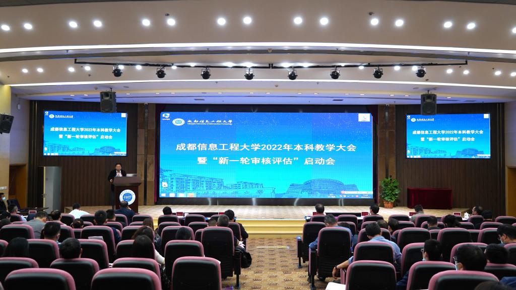 校长余敏明作“坚持立德树人,构建高水平人才培养体系,推进人才培养质量再提升”主题报告。报告从立德树人根本任务落实、专业结构优化及内涵发展、教育教学模式创新改革等八个方面介绍了近年来我校本科教育教学工作取得的成绩。同时指出要立足新时代、对标新要求,清醒认识我校高水平大学建设的差距和不足。他进一步强调全校要切实对标竞进,争创一流,以新一轮审核评估为契机,打造核心优势、彰显办学特色、坚持内涵发展、提升综合实力,坚持“立德树人、五育并举、一流建设、科教融通、产教融合”持续促进本科教学质量再提升,不断加快“开放的特色鲜明的高水平成都信息工程大学”建设步伐。
