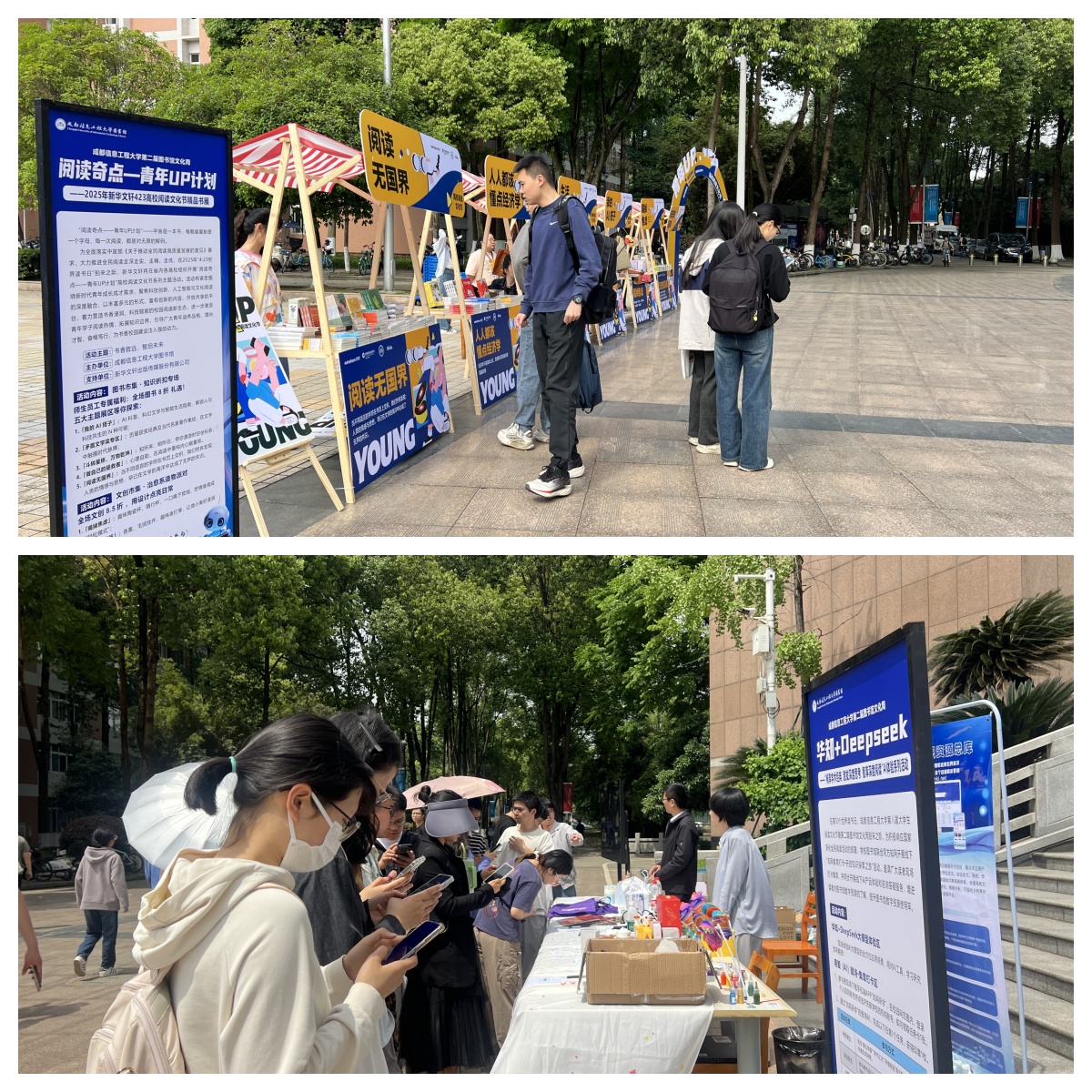 “展卷生香 执笔成光”文学作品创作大赛获奖作品展,集中呈现2024年成信学子文学风采;中国铁道出版社“书香致远 智启未来”精品教材展,助力教育教学资源精准对接;此外,4月25日“光影解码未来”影视鉴赏分享交流会,将带领师生解析经典影片中的智慧哲思。