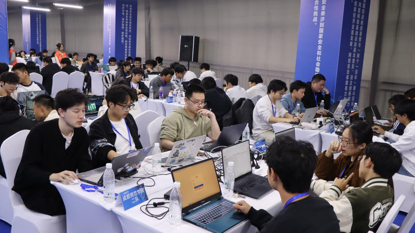 本次大赛吸引全省38所高校的97支队伍、289名学生选手参与,指导教师也到场观摩。比赛中,选手们以3人组队的形式同台竞技,各显其能,上演了激烈精彩的攻防盛宴。比赛成绩全程实时公开,最终排名由首日CTF夺旗赛与次日AWDP攻防赛的成绩综合确定。