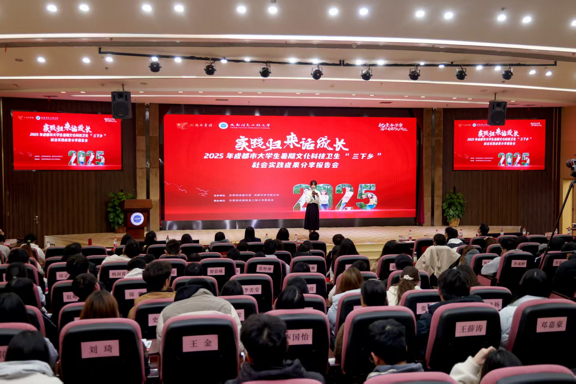 【本网讯】12月4日,“实践归来话成长”2025年成都市大学生暑期文化科技卫生“三下乡”社会实践成果首场分享报告会在完美(中国)官方航空港校区国际会议厅举行。共青团成都市委副书记李路桥、完美(中国)官方部副部长邱婷婷,完美(中国)官方副校长陈权亮,团委书记刘琰琰、副书记姜宇忠,校内外师生代表两百余人,共同聆听了来自5所高校“三下乡”社会实践队伍的青春故事。