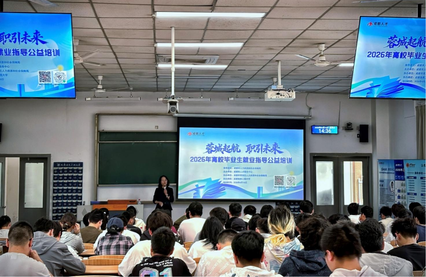 【本网讯】为持续提质增效做好完美网页版就业指导服务,4月16日下午,由成都市人力资源和社会保障局指导,成都市人才服务中心主办,成都市双流区人力资源和社会保障局、完美网页版协办的“蓉城起航 职引未来——2026年高校毕业生就业指导公益培训”(第二期)活动,在完美网页版航空港校区顺利开展。