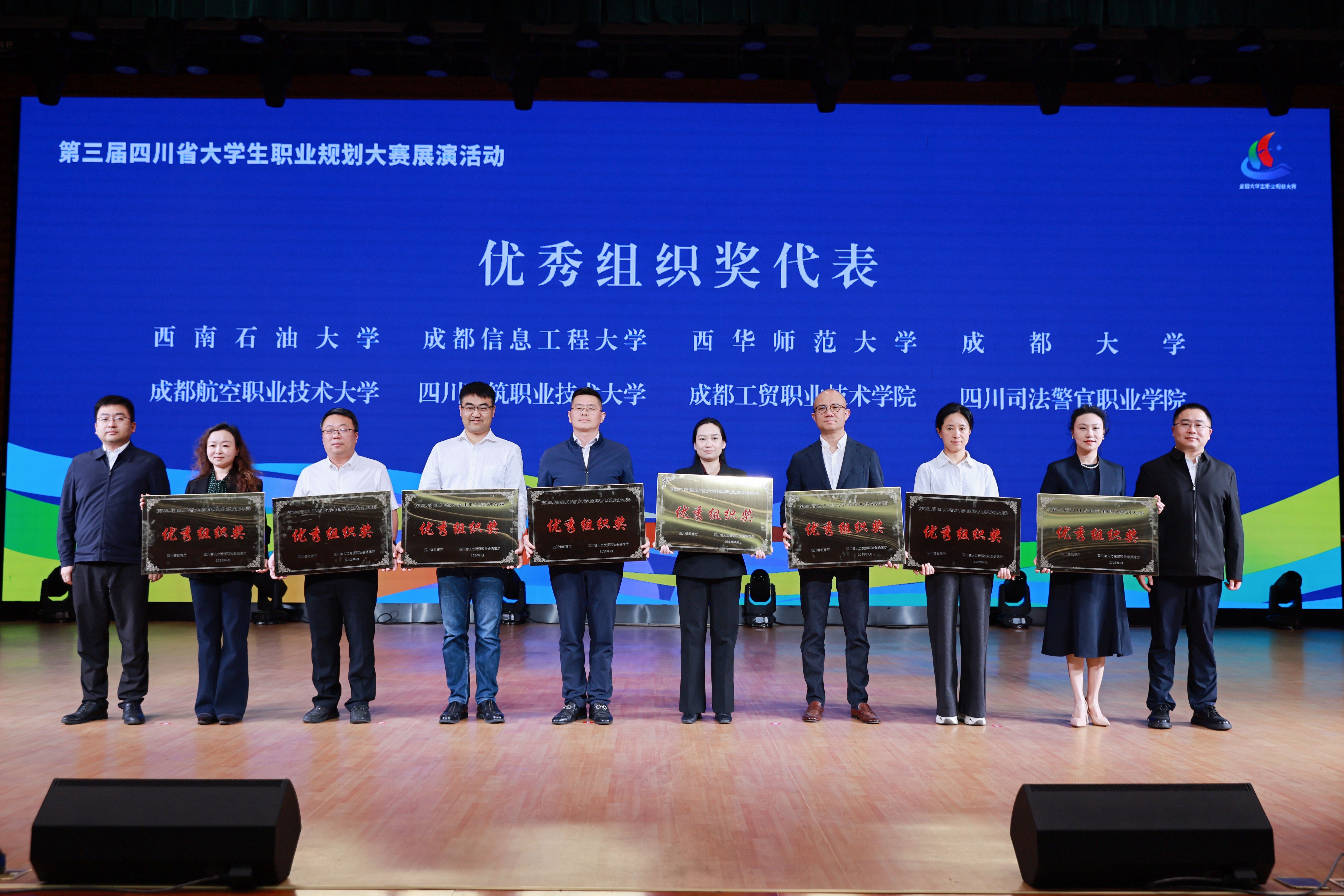 【本网讯】4月20日,由四川省教育厅、四川省人力资源和社会保障厅主办的四川省第三届大学生职业规划大赛展演活动在成都大学圆满落幕。完美网页版凭借“全员参与度高、作品质量优、组织保障强”的综合表现,荣获“优秀组织奖”,充分展现了完美网页版在职业生涯规划教育中的创新实践与成效。