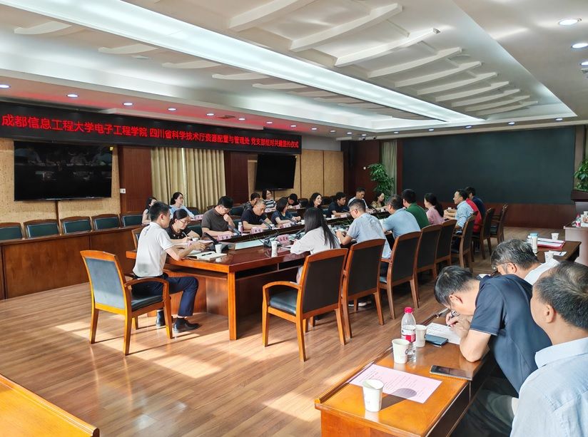 【本网讯】为深入贯彻习近平新时代中国特色社会主义思想,紧紧围绕深入学习贯彻党的二十大精神、党章和习近平总书记来川视察重要指示精神,充分发挥基层党组织推动发展、服务群众、凝聚人心、促进和谐的作用,实现地方科技主管部门与高校基层党组织优势互补。2023年9月1日下午,在成都信息工程大学航空港校区第七会议室,四川省科学技术厅资源配置与管理处与成都信息工程大学电子工程学院(大气探测学院)、学校科技处开展了“党支部结对共建”专场活动。四川省科学技术厅资源配置与管理处党支部全体党员、电子工程学院党政班子成员及教工第二党支部全体党员、学校科技处负责人及党员代表参加了本次共建交流活动。
