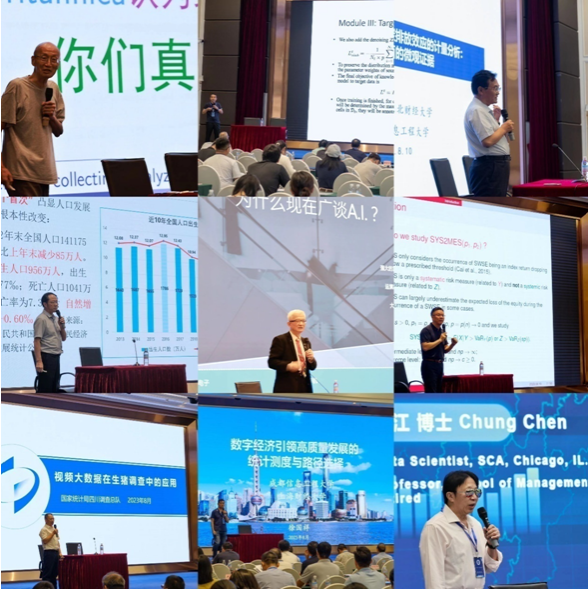 年会特邀台湾辅仁大学谢邦昌教授、四川省统计局曾俊林副局长、美国雪城大学陈江教授、国家统计局四川调查总队黄加才副总队长、中国人民大学吴喜之教授、东北财经大学王维国教授、成都信息工程大学朱胜教授、四川大学寇辉教授,成都信息工程大学特聘教授、上海财经大学徐国祥教授,北京大学邓明华教授、复旦大学黎德元教授、成都信息工程大学段苏玲博士分别作了大会报告,涉及AI、政府统计、数据驱动、视频大数据、数据科学与统计标签、数字金融,生育意愿调查,序、拓扑与理论计算机科学,数字经济与高质量发展、生物统计、经济统计、食品工业等领域问题研究。年会设置了4个平行分会场、79场分组报告,统计学院师生积极参与并做了分组报告。
