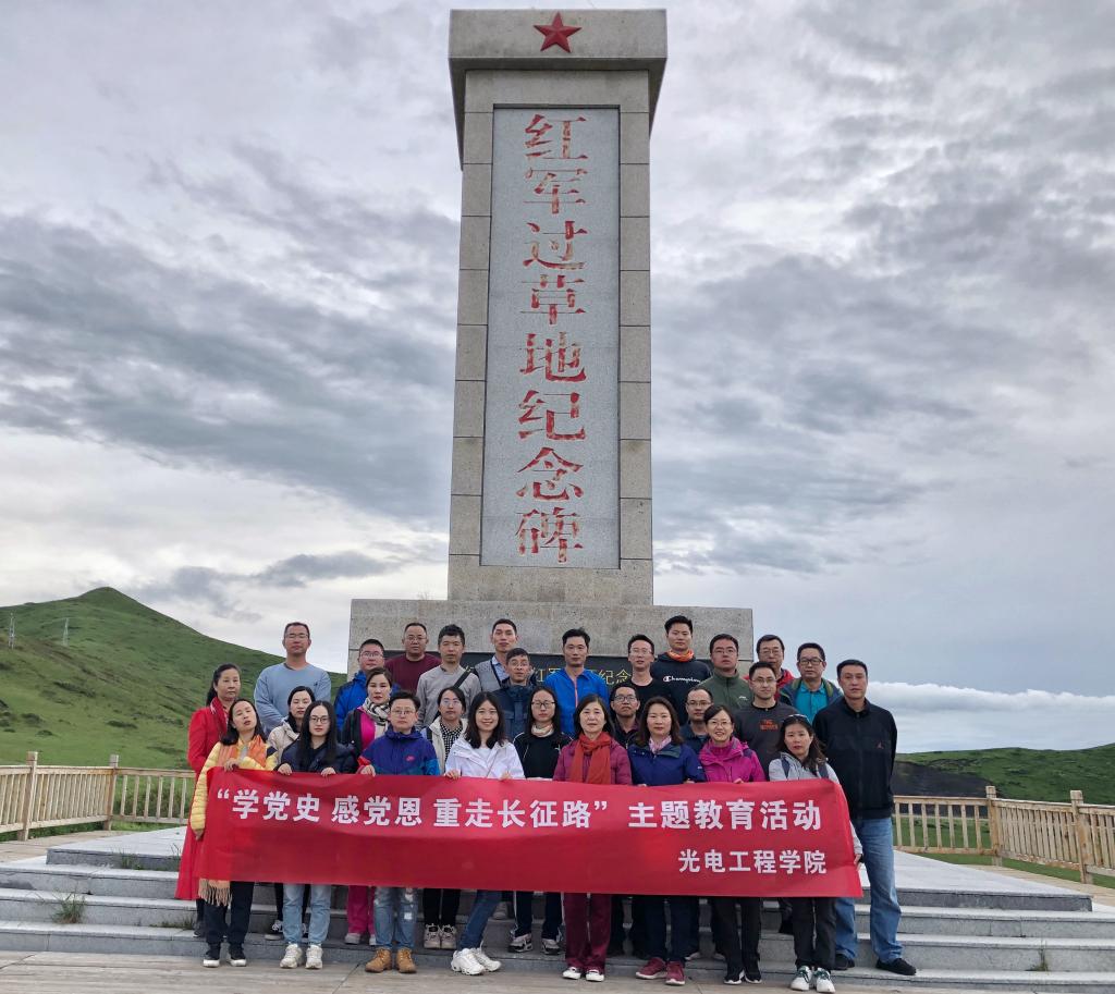 【本网讯】为庆祝建党100周年,重温党的光辉历史,继承和发扬党的光荣传统和优良作风,进一步增强党的凝聚力和战斗力,激励广大党员同志不忘初心、牢记使命。近日,光电工程学院党委组织党员前往四川若尔盖县开展主题为“学党史、感党恩,重走长征路”的主题教育活动。