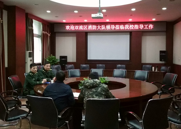【本网讯】11月22日,成都市双流区消防大队林霖、张翃博参谋到我校对航空港校区消防安全工作进行专项检查。工作汇报会在航空港校区六会议室举行。