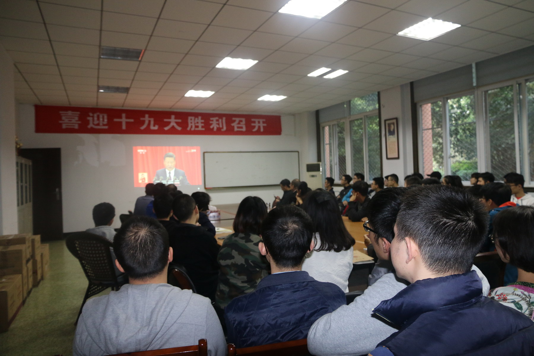 【本网讯】10月18日上午9时,控制工程学院在信息楼108会议室集中观看中国共产党第十九次全国代表大会开幕会直播。