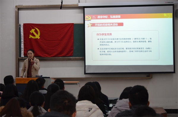 随后,与会党员在集中讨论交流时,紧扣研讨主题,联系校园实际情况,谈了思想认识和学习体会。大家一致认为,作为学生党员应重点学习讨论能否遵守《研究生手册》中各项规章制度,始终保持积极的理想信念,做到心中有戒尺,行动有底线,不断提高纪律意识和底线意识。